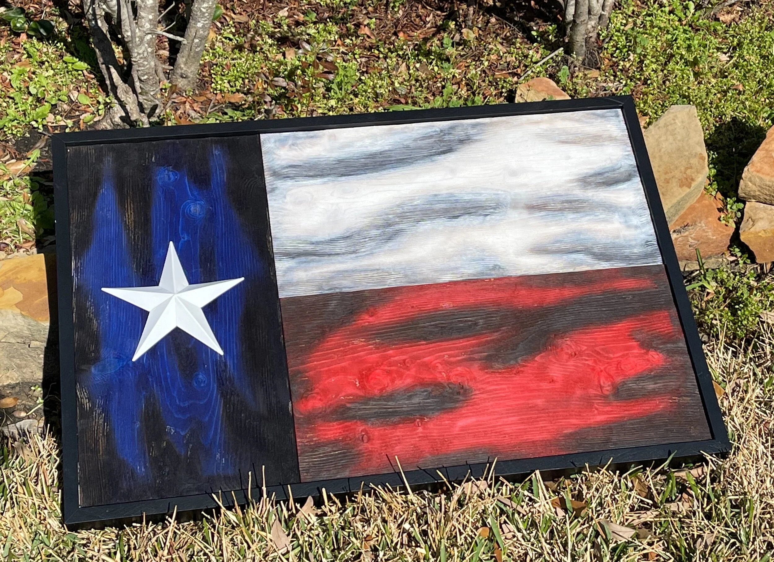Matt’s Texas and American Flags have already become popular with the Houston art community. His sights are now set on building custom tables and other creative projects for the home.